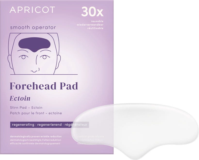The Ectoin Forehead Pad by APRICOT provides intensive and long-lasting care for the skin in the forehead area using natural ectoin. It is made from medical-grade silicone and can be reused up to 30 times. The pad also protects against blue light. Fine lines are smoothed and minimised.