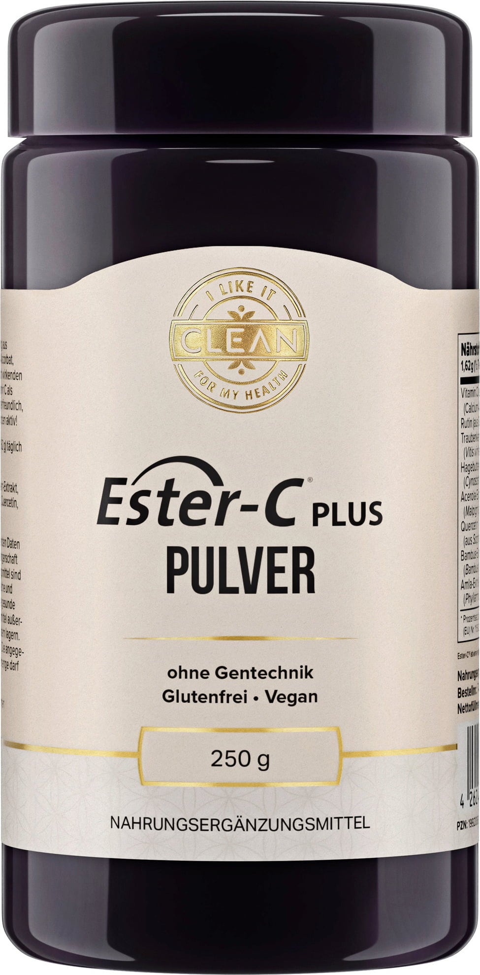 The Ester-C® Plus Powder by i like it clean combines the patented branded ingredient Ester-C® – a pH-neutral form of vitamin C – with valuable plant compounds such as amla, acerola, OPC, quercetin and rutin. Vitamin C supports the normal function of the immune system, contributes to normal collagen formation for skin, blood vessels and bones, and helps protect cells from oxidative stress. In addition, it contributes to the reduction of tiredness and fatigue.