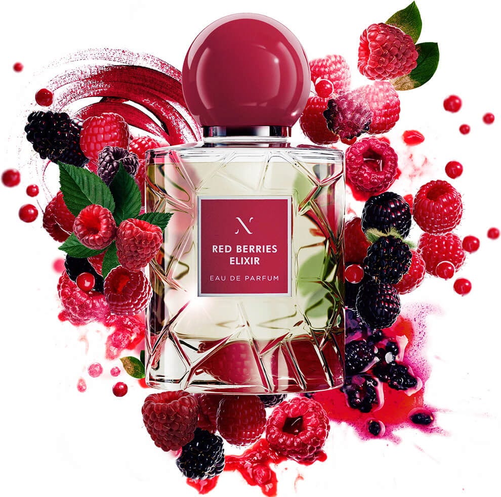 The "Red Berries Elixir" Eau de Parfum by Les Sœurs de Noé exudes joy, exuberance and a charismatic mood. Imagine a sunny, warm spring day, a get-together with friends, a time full of joie de vivre and laughter. The air is filled with the lovely scent of red berries mingling with delicate floral notes. This combination brings happiness and fills the heart with light and joy.