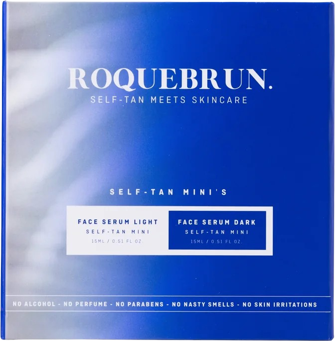The Mini Set by ROQUEBRUN includes two self-tanning serums that give the skin a naturally bronzed look while providing intensive hydration. They can be applied directly to cleansed skin or mixed with your daily skincare products. Premium ingredients such as plant-based retinol, hyaluronic acid, collagen, and aloe vera help smooth, firm, and soothe the skin. Suitable for all skin types, these self-tanning serums can be used morning and evening, delivering a natural-looking tan without an orange hue. The lightweight, non-greasy textures absorb quickly, are fragrance-free, and develop visible results within 4 to 8 hours that last for 3 to 4 days. Enjoy a sun-kissed complexion while optimising your regular skincare routine.